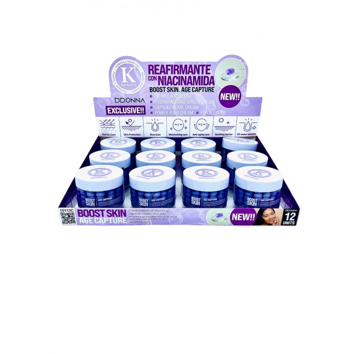 KOREAN BEAUTY , CREMA REAFIRMANTE CON NIACINAMIDA y con cápsulas de péptidos lilas tiene como objetivo la hidratación profunda y la firmeza de la piel. Hidrata la piel, aumenta su firmeza y elasticidad, suaviza las arrugas mímicas y tiene un efecto lifting. Es un producto innovador que tiene una textura de gel con cápsulas de crema sumergidas en ella. Cuando se aplica, las dos consistencias del producto se combinan y proporcionan una hidratación intensiva y regeneración de la piel.