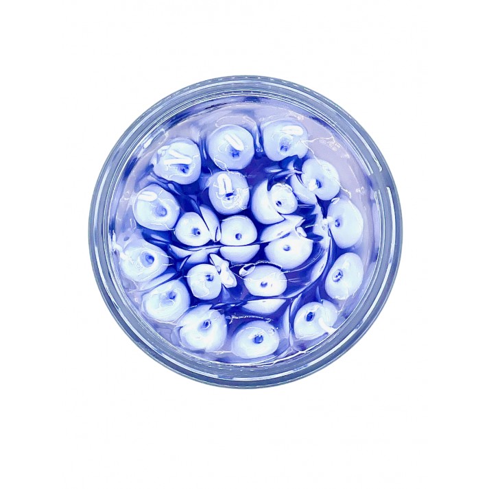 Cápsulas activas lilas que se rompen justo al aplicarlas, liberando frescor que ayuda a regenerar y reafirmar la piel.
